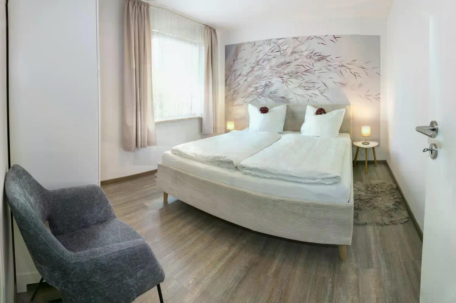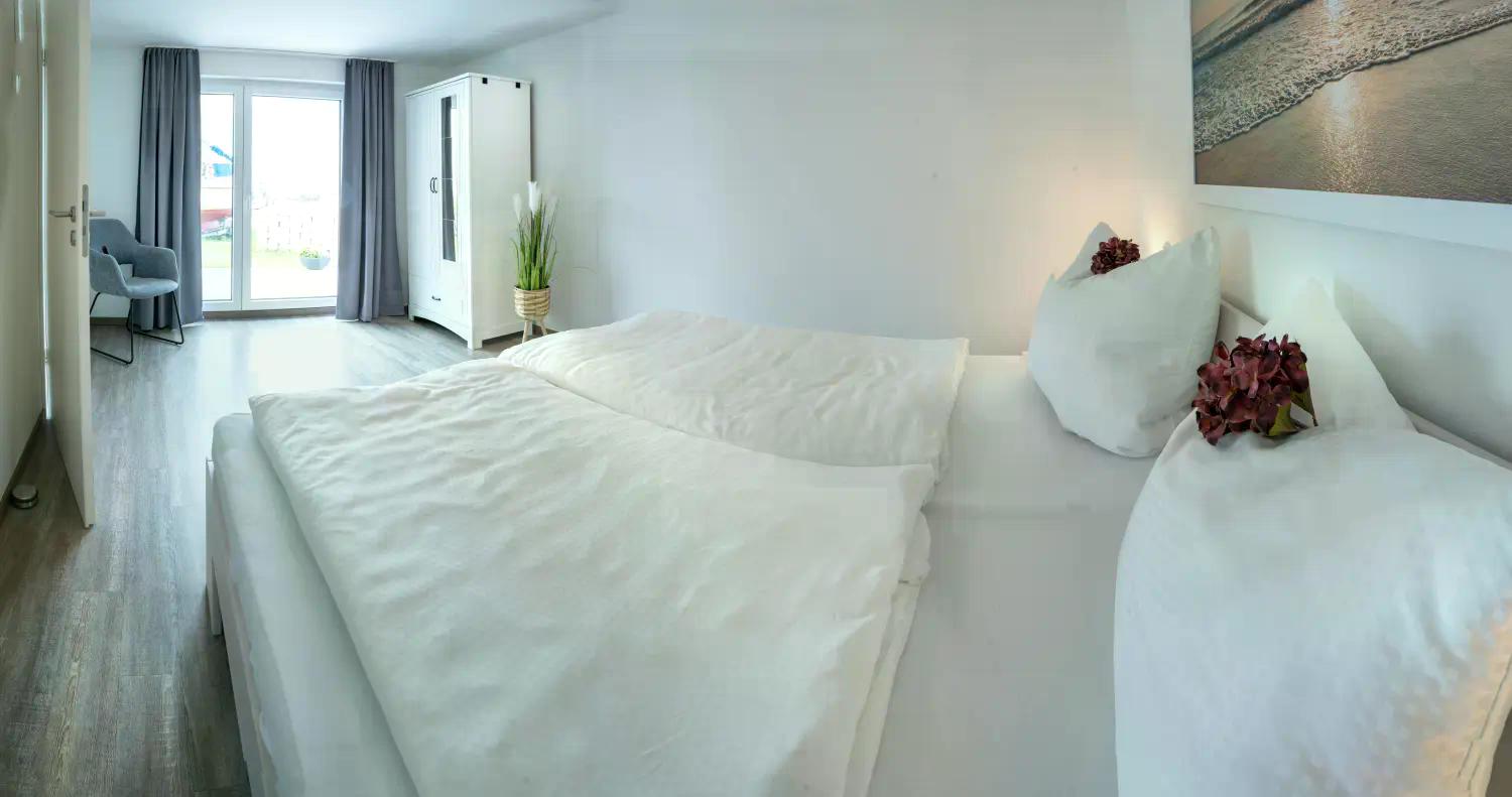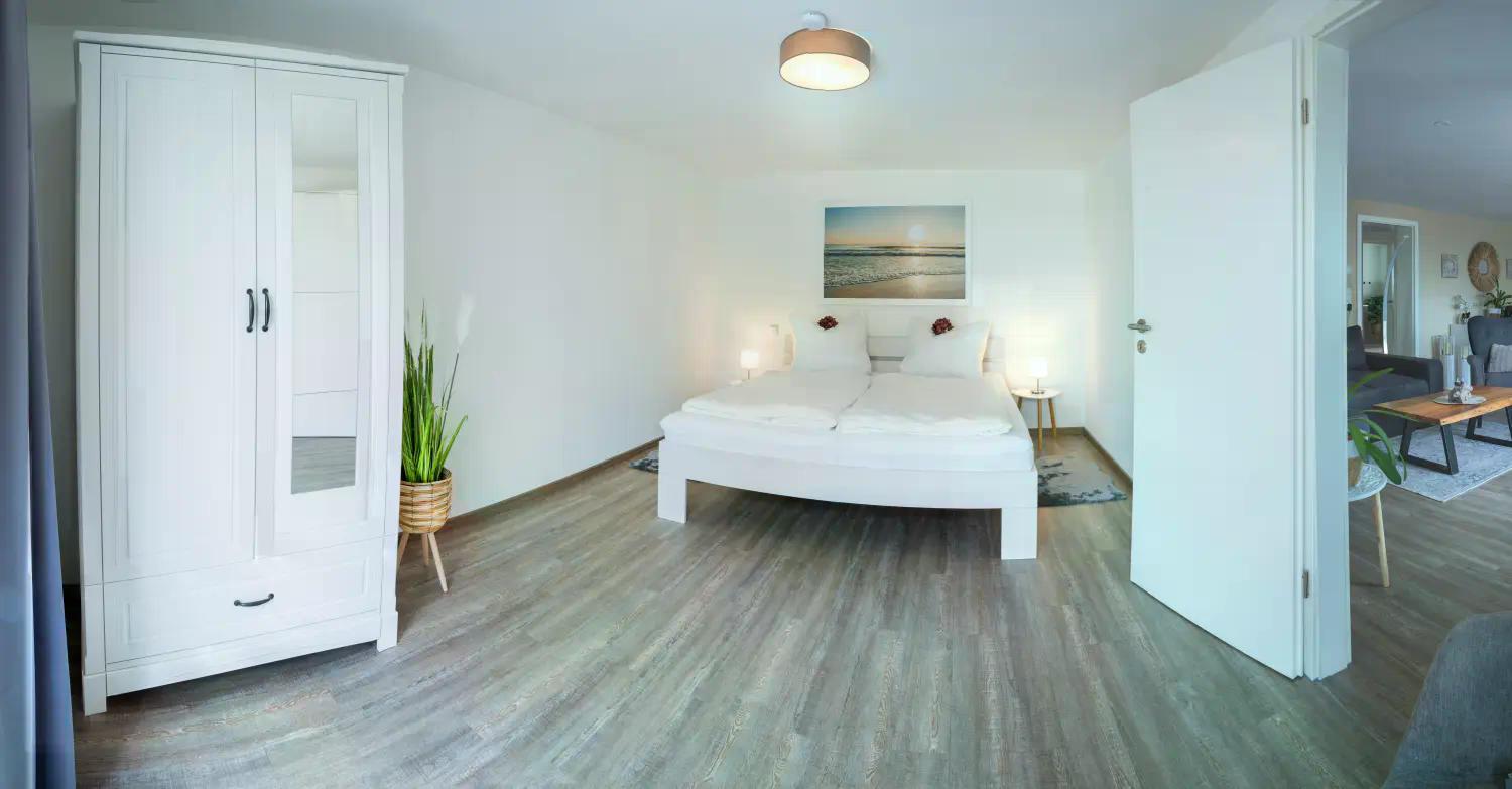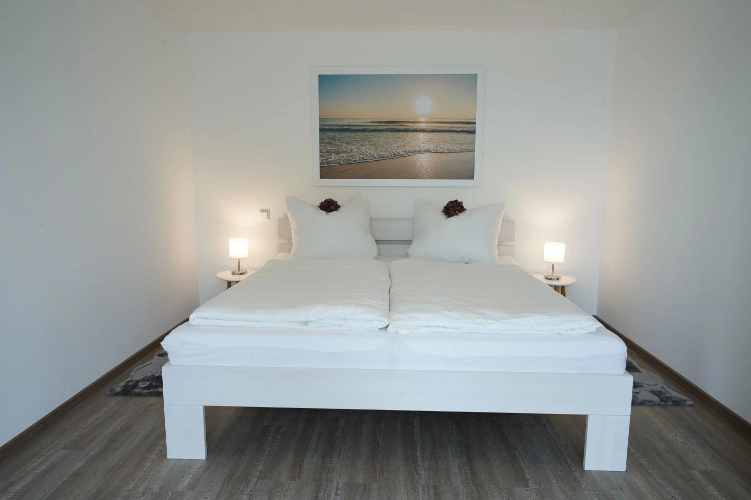Es verfügt über zwei gemütliche Schlafzimmer mit Doppelbetten (1,80 × 2,00 m) sowie eine Schlafcouch im Wohnbereich.