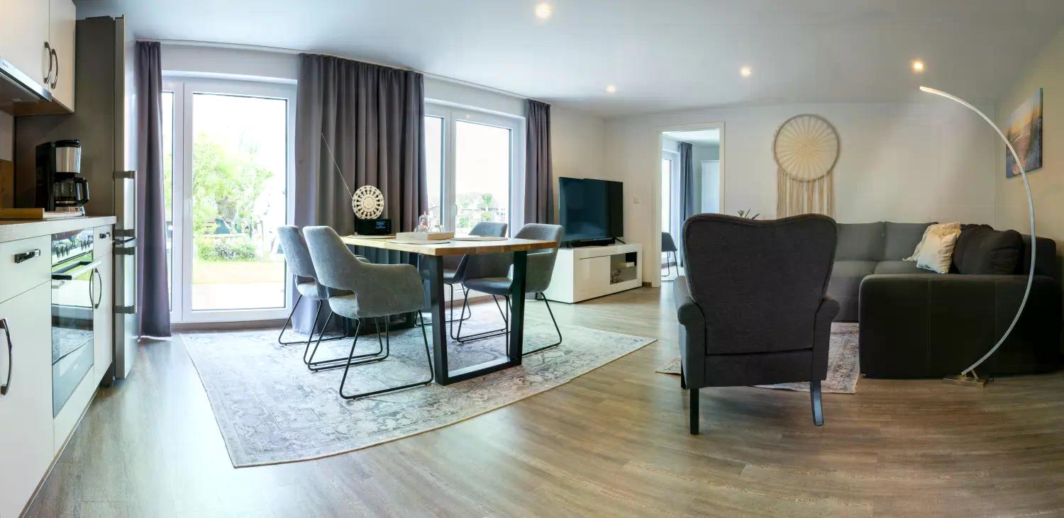Die Wohnung – Comfort 6 bietet auf einer 105 m² großen, ebenerdigen Fläche Platz für bis zu 6 Personen bietet – ideal für Familien oder Gruppen.